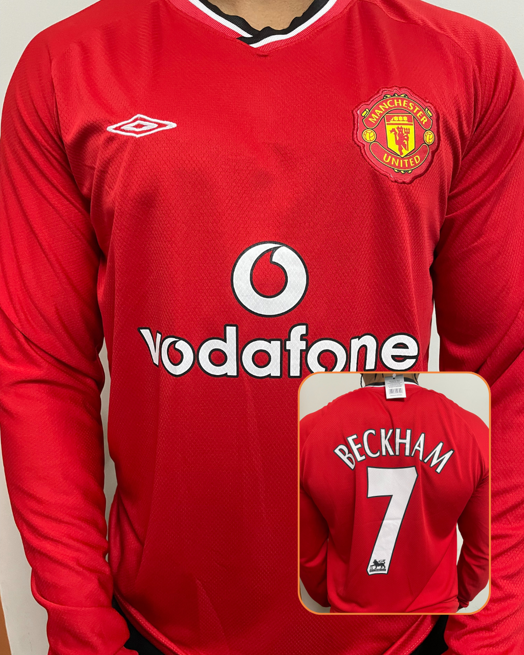 Camisa Man United Vermelha Manga longa Retrô Beckham 2001/02